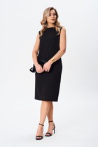 Элегантное женское платье, прилегающего силуэта: по переду и спинке вытачки по талии. Горловина круглая. Застежка на молнию в центральном шве спинки. Рукава втачные, двухшовные, расширенные к низу, в переднем шве, по низу, разрез. Платье без подкладки