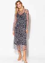 Элегантное женское платье, выполнено из двух видов ткани. Верх из плательной ткани, низ – сетка.
