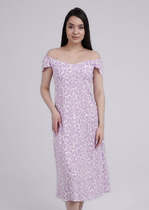 Платье А-силуэта, отрезное по линии талии с рюшей. Втачной длинный рукав со сборкой по окату и внизу на резинке. По переду лиф с центральной застежкой на петли-пуговицы. Полочка и спинка с притачными слегка присборенным воланом с рюшей из основной ткани и воланом из отделочной ткани по низу платья. Воротник стойка с рюшей. Платье на подкладке.