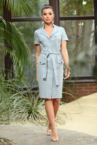 Платье двойное. Верхнее из сетчатого трикотажного полотна прямого силуэта, длинное, с коротким втачным одношовным рукавом.  По спинке настрочена нашивка с печатью "BUTER" Горловина лодочка. По боковым швам обработаны разрезы. Нижнее платье из трикотажного полотна прямого силуэта без рукавов.