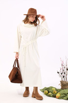 Платье женское приталенного силуэта из костюмной ткани. Вырез горловины оформлен воротником рубашечного типа. Застежка - потайная на петли с пуговицами. Рукава - втачные с мягкой складкой в области оката. Низа посажены на отрезные манжеты с застежкой на петли с пуговицами. Отрезное по линии талии. В боковых швах имеются карманы. Справа выполнен разрез, слева - складки. Изделие декорировано съемной баской.