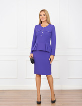 Платье женское, полуприлегающего силуэта, расширенное к низу. По спинке средний шов с разрезом понизу. По переду нагрудные вытачки, отделочный накладной карман с поясом, который фиксируется в боковом шве. В боковых швах-карманы. Рукав втачной-короткий.