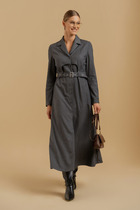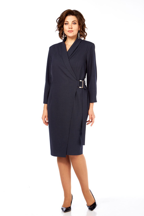 Платье женское полуприлегающего силуэта с запахом и застежкой на пряжку и пояс. Спинка со средним швом и рельефами от проймы до линии бедер. Перед с рельефами от проймы до линии бедер и цельнокроынйм воротником-шаль. Рукав втачной одношовный с вытачкой от низа до локтя. Внутри запах фиксируется на хлястик с петлями и пуговицами в области талии. Фурнитура может отличаться от заявленной на фото.