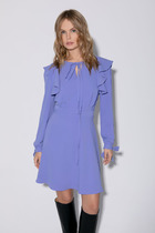 Изящное струящееся платье свободного силуэта из ткани с пайетками на трикотажной подкладке. Длиной чуть выше колена. Рукав втачной, по низу рукава сборка на резинку. По горловине спинки разрез с застежкой на пуговицу. В дополнение прилагается сьемный пояс.