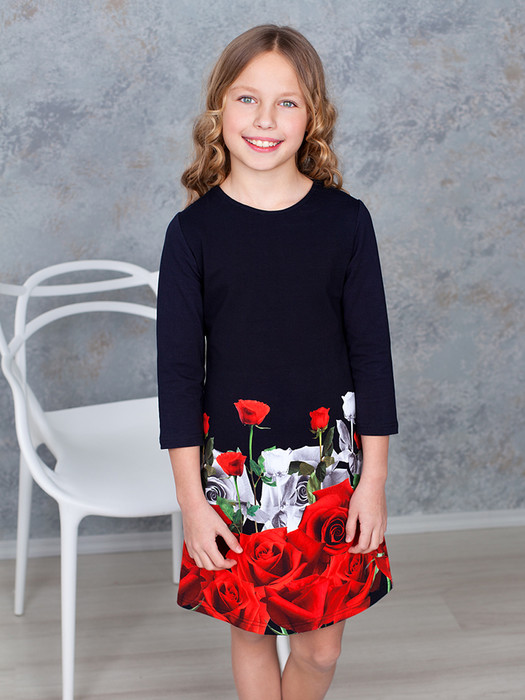 Очаровательное платье выполнено из ткани с дизайнерским принтом.Приятное на ощупь,не сковывает движения,обеспечивает комфорт..Отличный вариант для юной модницы как на праздник,так и на каждый день.