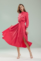 Весна-сезон, когда необходимо быть неотразимой, волшебной и всегда блистательной. Модель подчеркнет вашу красоту и универсальность. Женственное платье полуприлегающего силуэта. Эффектный втачной рукав, расширенный к низу, образует форму колокола, длина 7/8. Округлый вырез горловины. На спинке вырез, застежка на навесную петлю и пуговицу. В боковых швах имеются разрезы