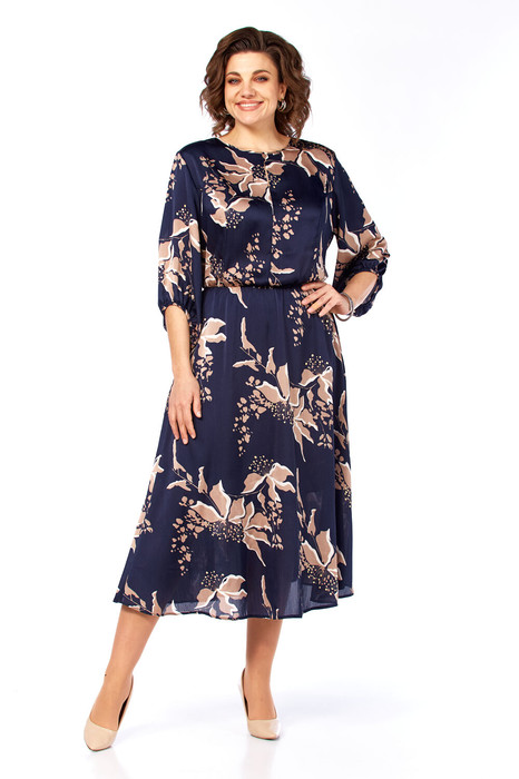 Платье Элль стиль 2457 темно-синий/кофе принт