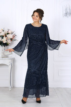 Нежное, изысканное платье, полуприлегающего силуэта расширенное к низу из струящейся ткани. Модель обеспечивает комфорт и свободу движений. Платье отрезное по линии талии, в подрез вставлена резинка, для комфортной посадки изделия. Горловина округлая, подчеркнута эстетичным вырезом по лифу. Рукав втачной, эффектная форма придает легкость стилю. Застежка на навесную петлю-пуговицу. Низ платья на подкладке.
