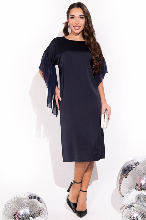 Коктейльное платье от бренда ELZA, для тех кто любит удивлять. Прямой силуэт, спущенный рукав с шифоновым воланом, оригинальный крой. Длины: ( 46-50р-103 см,52-54р-104 см).