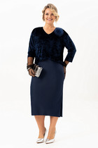 Платье выполнено из плотного атласа. Платье приталенного силуэта, отрезное по линии талии, длиной выше линии колена. Лиф выполнен в виде корсета, в рельефы вставлен регилин. Застежка на потайную молнию сзади в среднем шве спинки и юбки.  Юбка прямого силуэта. Платье на притачной по низу подкладке.