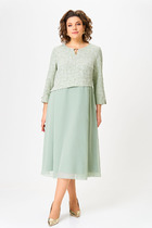 Платье женское полуприлегающего кроя, выполнено из шифоновой ткани. Изделие отрезное по линии талии, рукав втачной короткий, низ рукава обработан эластичной тесьмой. Горловина по лифу фигурная, По спинке платья имеется вставка из сетки и вырез "капелька". Платье на подкладке.