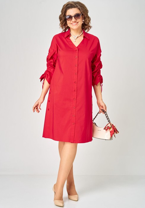 Платье стильное молодежное женское нарядно повседневное прямого силуэта выполнено из хорошего красивого хлопка в сочетании с отделкой из хлопка. Вырез горловины фигурный, воротник на стойке, плечо спущенное рукав втачной . По центру рукава настрочена отделочная деталь и втянута кулиса для регулировки рукава на нужную длину, что придает изделию стильный и шикарный современный образ. Застежка центральная на обметанные петли и пуговицы, в боковых швах обработаны шлицы и пришиты отделочные пуговицы, что придает модели при всей элегантности и кокетливый образ. По спинке отрезная кокетка и встречная складка за счет которой спинка слегка расширена.