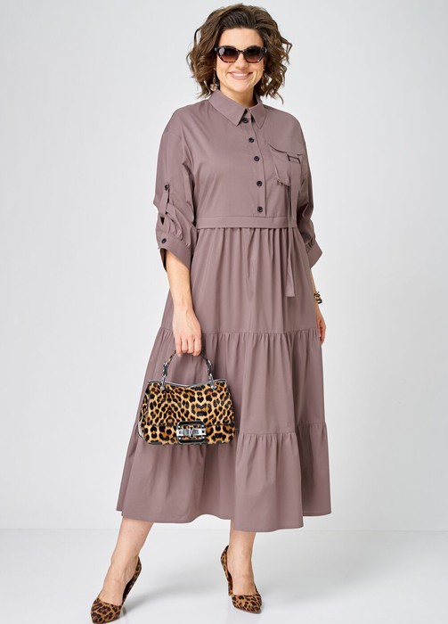 Платье нарядно-повседневного стиля, выполненная из качественного однотонного хлопка. Удобный и стильный дизайн модели для любого случая. Платье полуприлегающего силуэта с расширенной юбкой создаёт легкость и изящество. Воротник-стойка рубашечного типа и застежка планка на пуговицах придают модели классический вид, а спущенное плечо и рукав с регулируемой патой добавляют функциональности. Особый шарм платью придают три волана на юбке и накладной карман с пряжкой. Подходит для круглогодичного сезона и станет идеальным выбором как для работы, так и для отдыха. Красивый цвет позволяет легко сочетать платье с различными аксессуарами.