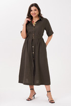 Платье женское нарядно-повседневное полуприлегающего силуэта до талии расширенное к низу за счет воланов. выполнено из хлопка в сочетании с отделкой из шитья в цвет основной ткани. Вырез горловины воротик на стойке рубашечного типа, рукав втачной с притачным воланом со соркой и вставкой из шитья. По переду платья ассиметричная вставка с иммитацией застежки. Декором платья служит съемнй пояс из основной ткани и вставки из отделочной ткани.