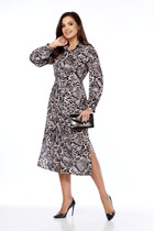 Платье женское нарядно-повседневное полуприлегающего силуэта расширенное к низу. Выполнено из хлопка в сочетании с шитьем. .Вырез горловины фигурный, воротник на стойке рубашечного типа. Рукав спущенный из отделочной ткани по низу с воланом собранным на сборку. Платье отрезное по лиии талии. Юбка ассиметричная с застежкой доверху на обметанные петли и пуговицы. По низу юбки притачной волан из отделочной ткани (шитье), в боковых швах обработаны карманы. Декором платья служит дизайн ткани,отделочные элементы из шитья. съемный пояс из основной ткани и отделочные пуговицы.