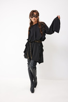 Свободный А-силуэт, покрой с заниженной линией плеча, длина макси. Полочка с эффектным вырезом и авторскими сложными буфами. Спинка - со средним швом.