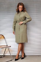 Изысканность и элегантность такого платья дарит своей обладательнице эффектный образ. Полуприлегающий силуэт, втачной покрой, отрезной лиф и коническая юбка. Полочка лифа с центральной застежкой на петли и пуговицы, втачным воротником, имитирующем стойку с фигурной линией втачивания, и мягкой складкой-вытачкой.