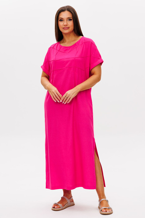 Такое платье-основа вашего летнего гардероба! Свободный упрямленный силуэт, цельнокроенный покрой. Полочка с отрезной кокеткой, изысканно декорированной строчками-защипами. Спинка с отрезной кокеткой и застежкой каплей. По низу рукава-отложной манжет.