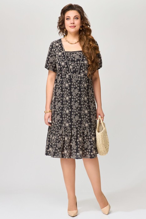Платье женское "Рогнеда" из хлопковой ткани (решилье) на натуральной хлопковой подкладке, полуприлегающего силуэта. Вырез горловины - квадратный, но низу платья - волан, собранный на сборку. Низ волана обработан швом в подгибку с закрытым срезом. Рукав втачной, низ рукава обработан швом в подгибку с закрытым срезом. По спинке платья по талии две вытачки. Это элегатное платье из хлопкового шитья удобное в носке в жаркую погоду, практичное для выхода в город или на любой праздник.