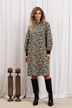 Женское платье "Альвина" выполнено из костюмно-плательной ткани, в полоску со стразами.