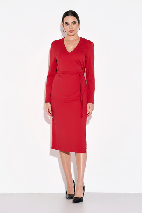 Женское платье на запах длины миди полуприлегающего силуэта со втачными рукавами и V-образным вырезом горловины. Изделие выполнено из мягкого высококачественного полотна с содержанием вискозы. Ткань не скатывается и не деформируется при правильном уходе.