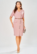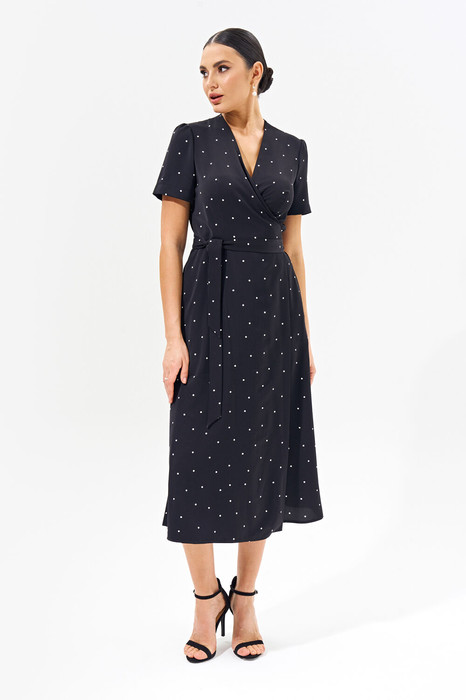 Классическое женское платье с запахом выполнено из легкой струящейся ткани. Изделие отрезное по линии талии со втачными рукавами и карманами в боковых швах.