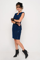 Платье прямого силуэта из плотного трикотажного полотна с рисунком и с люрексом. Перед с нагрудными вытачками. Спинка со средним швом. Горловина лодочкой обработана планкой. Рукав одношовный втачной по низу со складками собранными на манжету.  Длина платья-100см, длина рукава-60см.