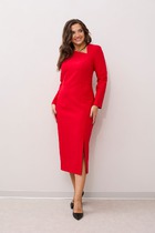 Платье с центральной застежкой на петли и пуговицы, на широких бретелях. Платье отрезное по линии талии. Верхняя часть переда с талиевыми вытачками, нижняя часть переда с карманами и односторонними складками по талии. Нижняя деталь спинки с талиевыми вытачками. Платье со съемным поясом.