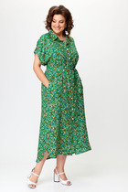 Платье расширенного силуэта, без застежки, с отложным воротником. По краю воротника- рюша. По переду вырез- капелька, со шнуром- завязкой. Перед с нагрудными вытачками. Спинка со средним швом. Платье на подкладке.