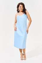 Платье без воротника, с квадратным вырезом горловины, застежкой на потайную молнию в среднем шве спинки. По переду с рельефами, выходящими из проймы. Спинка со средним швом, рельефами, выходящими из проймы. Рукав реглан, крылышко. Верхняя часть рукава присборена на резинку.