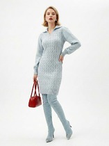 Платье выполнено из вискозной пряжи, имеет очень мягкое шелковистое туше, и благородный лёгкий лоск. Волокна pbt дарят платью внушительную эластичность, износостойкость и стабильность после стирки.