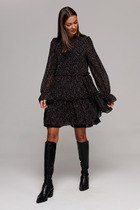Платье-рубашка полуприлегающего силуэта выполнено из натуральной ткани (вискоза). Платье свободного силуэта со втачными рукавами, внутренней патой и манжетой, что позволяет регулировать высоту рукава и представляет собой стильную деталь с изысканным акцентом; воротник рубашечный; по переду накладные карманы и функциональная кулиса по линии талии с декоративным шнуром-завязкой; застежка на петли и пуговицы. Платье соответсвует заявленному размеру.