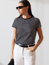 Базовая футболка в полоску полуприлегающая из премиального хлопка с эластаном
