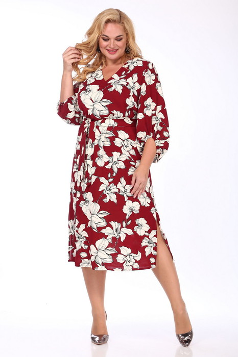 Платье женское нарядное изготовлено из плательной ткани прямого силуэта. Горловина V-образной формы. Рукав втачной, расширенный. Низ рукава имеет фигурную форму и собран на эластичную тесьму. По переду имеются нагрудные вытачки. Платье на съемной подкладке. Пояс изготовлен из основной ткани.