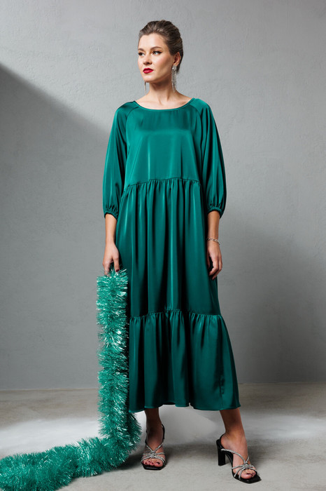 Платье в пол со сборками. Застежка по спинке на петлю-пуговицу. Рукав укороченный. Романтичное платье выполнено из плотного струящегося атласа, для ваших элегантных образов. длина платья - 122 см.