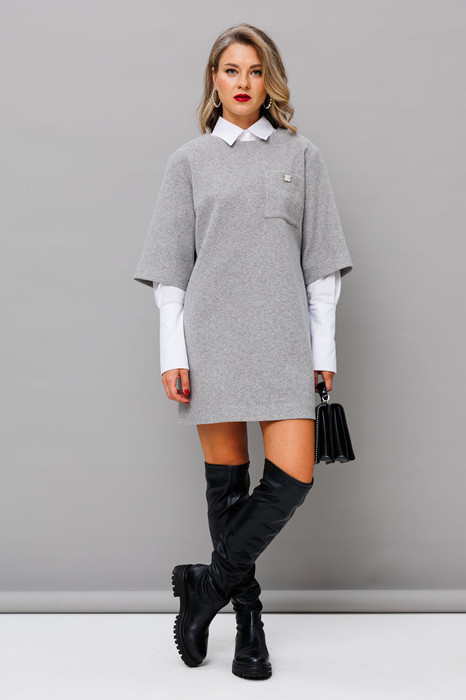 Платье прямого силуэта. По переду нагрудные вытачки, накладной карман. Застежка по спинке на потайную молнию. Длина - 80 см.