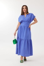 Восхитительное платье на любой случай! Платье отрезное по линии талии. Лиф с нагрудными и талиевыми вытачками. На спинке-талиевые вытачки, которые делают силуэт изящнее. По линии талии, для балансирования размерного объема, в шов вставлена эластичная тесьма (резинка, шириной 1 см). Горловина округлой формы. По окату и низу рукава-сборка. Рукав втачной, одношовный, длиной 64,5 см на манжете, высотой 8 см и застежкой на петли-пуговицы. Нижняя часть платья-прямого силуэта, чуть зауженная к низу. По линии талии также расположены талиевые вытачки. Конструктивная деталь - смещенный разрез с контрастными планками на пуговицах, разрез функциональный. В среднем шве спинки расположена застежка - потайная молния. Длина платья по спинке 105 см. Длина юбки платья от талии 66 см.