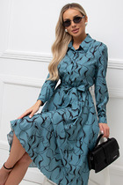 Платье А - силуэта с удлиненным рукавом и воланом по низу.