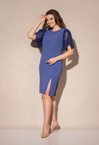 Платье свободного силуэта. Рукав втачной 3/4, низ рукава обработан притачной манжетой с застёжкой на пуговицу. По низу платья притачная рюша.