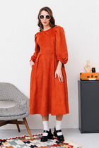 Эффектное платье в стиле «Бохо» из очень приятной  принтованной  ткани  дополнено готовым поясом , отлично подходит для шпилек и обуви на плоском ходу.  Платье А образного силуэта  с притачным воланом отрезное по линии талии (на резинке).  Лиф со средним швом и округлым вырезом на завязках с фиксаторами, Рукав комбинированного покроя, линия плеча приспущена, нижняя часть  со складками и резинкой по низу (можно регулировать длину рукава).  Съемный пояс  фабричного производства  завершает весь образ.
