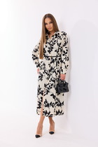 Легкое платье для повседневного использования, подходящее для любого сезона. Модель отличается воротником-стойкой и спущенной линией плеча, что придаёт образу непринужденность и удобство. Карманы в боковых швах делают изделие практичным, а отрезной пояс на резинке, расположенный по талии, обеспечивает идеальную посадку и подчеркивает фигуру. Широкая резинка по низу рукавов заменяет обычные манжеты. В комплект входит пояс, который завершает образ и добавляет стильные акценты. Оригинальный принт с вазами делает платье уникальным и ярким, привлекая внимание и делая его запоминающимся. Это универсальное решение для повседневного гардероба, создающее легкий, но элегантный вид.