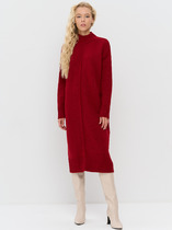 Стильное трикотажное платье свободного прямого кроя с боковыми разрезами. Выполнено из мягкого трикотажного полотна с эффектом стежки.  Рукав втачной, слегка спущен. Платье дополнено удобными карманами в боковых швах. По  среднему шву спинки расположен разрез. Длина платья от плечевого шва 106см.  Длина рукава 60см.