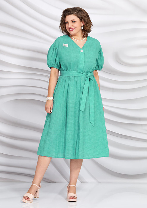 Универсальное, летнее платье полу-прилегающего силуэта, выполнено из хлопка с ненавязчим рисунком переплетения. Горловина V-образной формы, на обтачке, по линии талии отрезное, на резинке. Юбка платья расклешенная, в боковых швах карманы, рукав втачной, на спущенной пройме, присборен по окату и по низу на резинку. Спинка идентична полочке, отрезная по линии талии, на резинке, платье на хлопковой подкладке. Легкое, стильное и комфортное платье станет незаменимым выбором на каждый день!