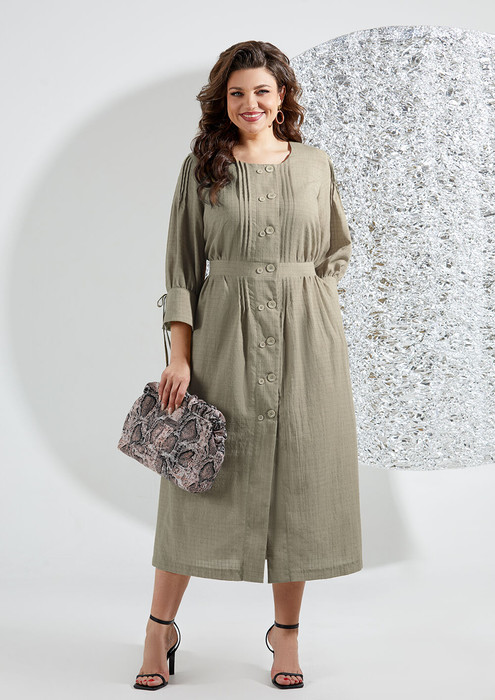Легкое, летнее платье полу-прилегающего силуэта, выполнено из хлопковой ткани, на хлопковой подкладке. Лиф платья отрезной по линии талии, с защипами по лифу и широким, притачным поясом из основной ткани. Горловина платья округлой формы, на подкладке, застежка по переду на петли-пуговицы, пуговица большая-функциональная, маленькая-декоративная. Юбка платья расклешенного силуэта, присборена по линии талии, спинка идентична полочке, с отрезным поясом по линии талии, на резинке, в боковых швах обработаны карманы.. Рукав втачной, длиной 3/4, по окату застрочены защипы, по низу рукава притачная манжета с разрезами, фиксируется на завязки. Эффектное платье выполненное из натуральной ткани с интересными конструктивными элементами отличный выбор для вас!