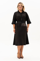 Платье полуприлегающего силуэта. Перед с нагрудными вытачками. Спинка со средним швом, заканчивающимся шлицей. Рукава втачные одношовные. Горловина обработана бейкой из основной ткани. Дополняет модель пояс.