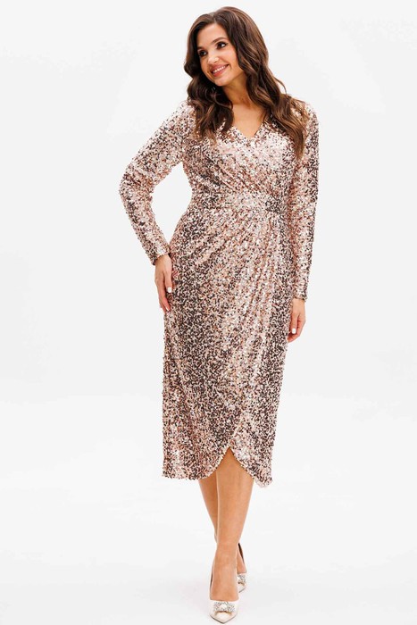 Платье MisLana 1161 розовое золото/пайетки