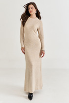 Платье женское приталенного силуэта, отрезное по линии талии. По лифу переда и спинки расположены рельефы. Юбка расклешенная с разрезом по переду. Застежка на потайную тесьму-молнию в среднем шве. Дополнительной застежкой служит шнуровка корсетного типа по спинке. Рукава съемные, держатся на резинке.