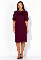 Новогоднее платье из интерлока пенье. Длинные рукава, общая длина чуть ниже середины бедра, карманы по бокам. Оформление в виде снежинок и геометрических узоров, треугольный вырез на груди. Размеры от 42 до 52. Внимание, данный товар не продается в розницу!