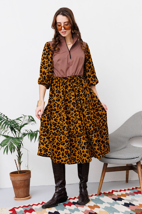 Платье NIKVA н447-2 шоколад+горчичный леопард