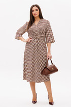 Элегантное платье приталенного силуэта, слегка расширенное к низу. Отрезное по линии талии. На деталях переда и спинки отрезные кокетки. На детали переда средний шов. По верхнему краю и на участке талиевого шва деталей переда и спинки выполнена сборка. Вырез горловины V-образной формы. На детали нижней части переда и спинки талиевые вытачки. Рукав длинный, втачной. Застежка платья на потайную молнию в боковом шве.